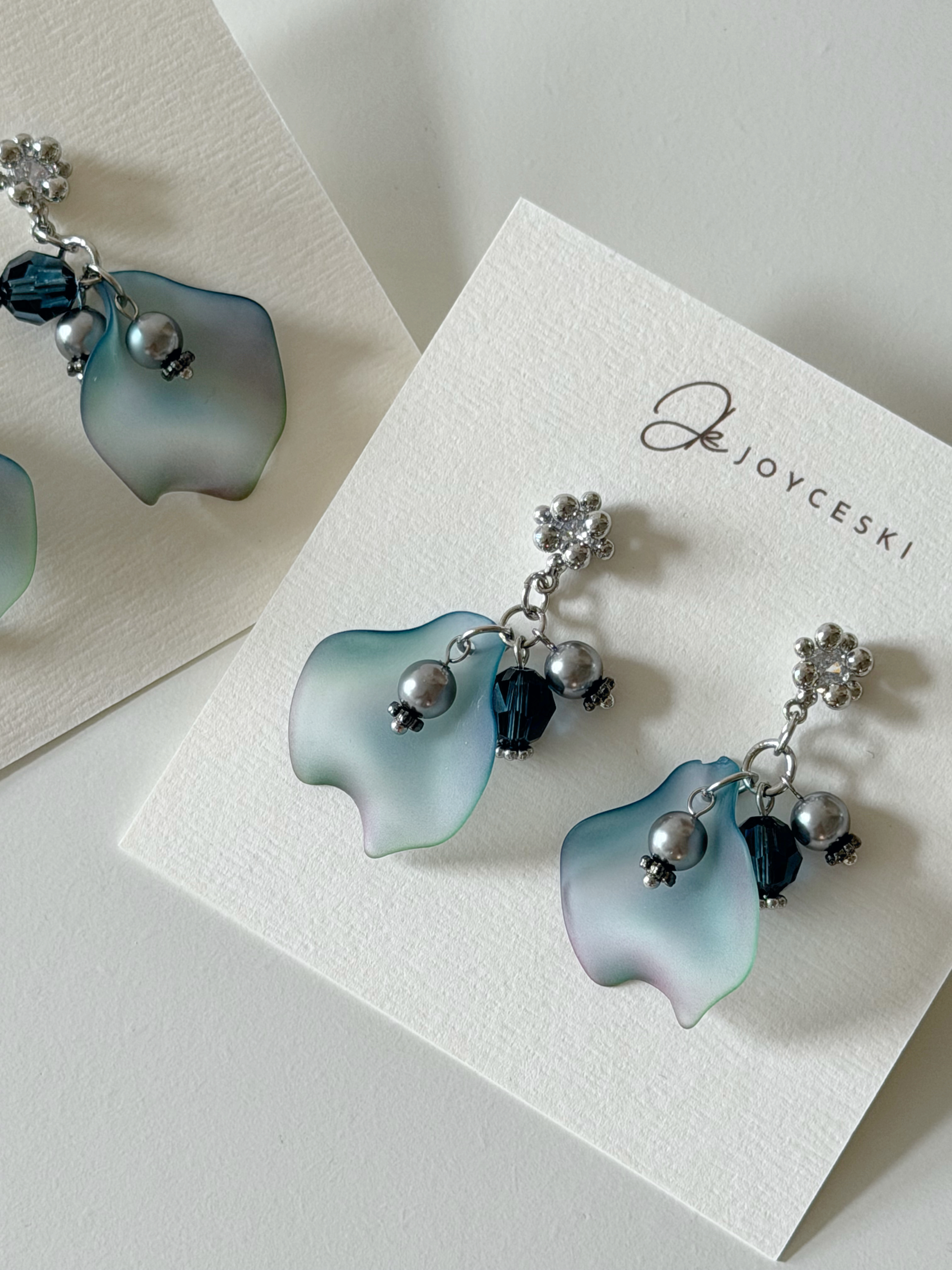日本暈染花瓣耳環 _ 暈染藍色