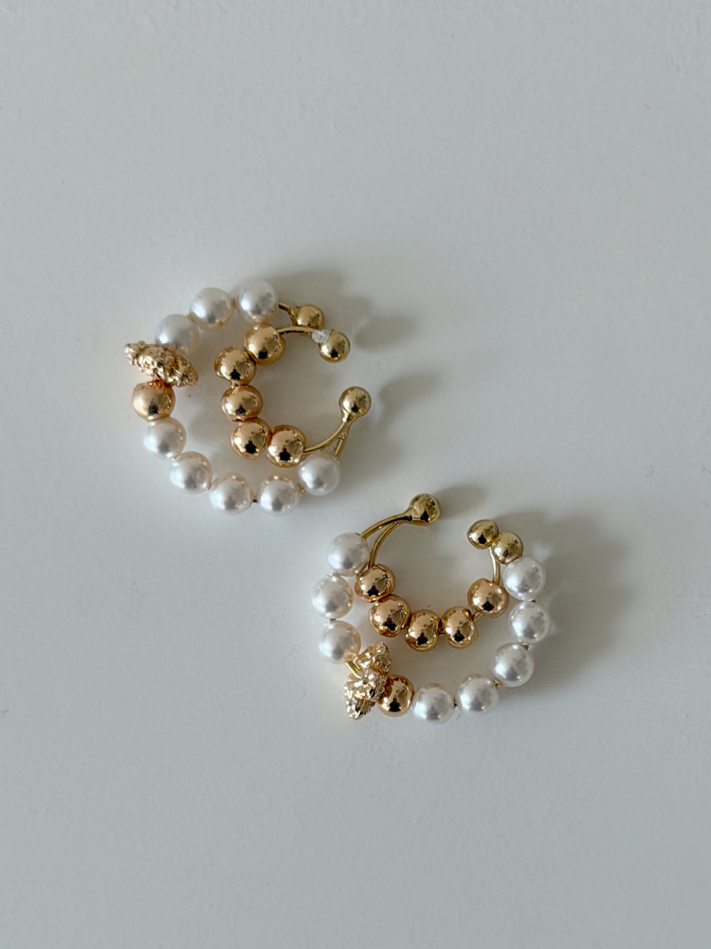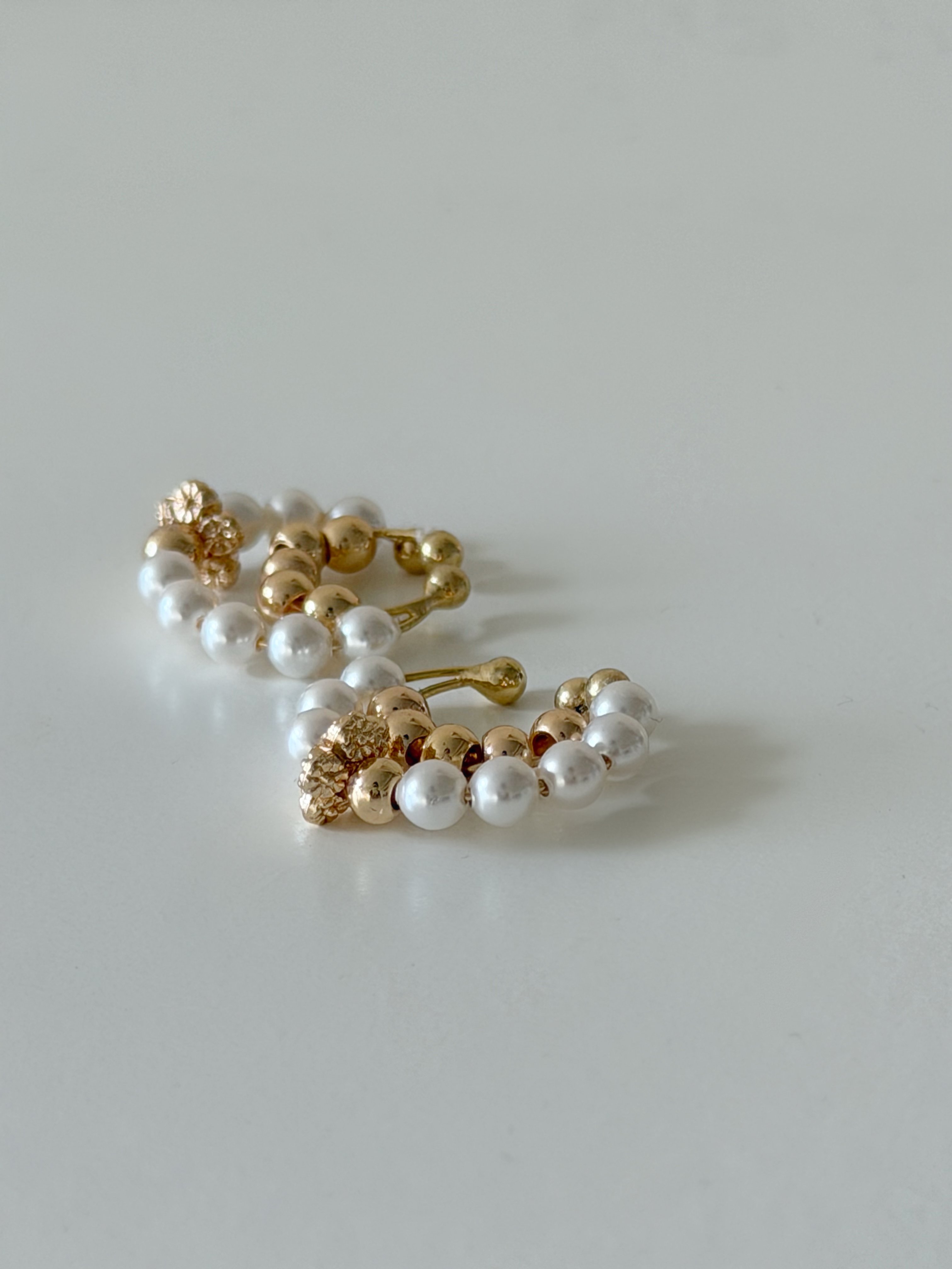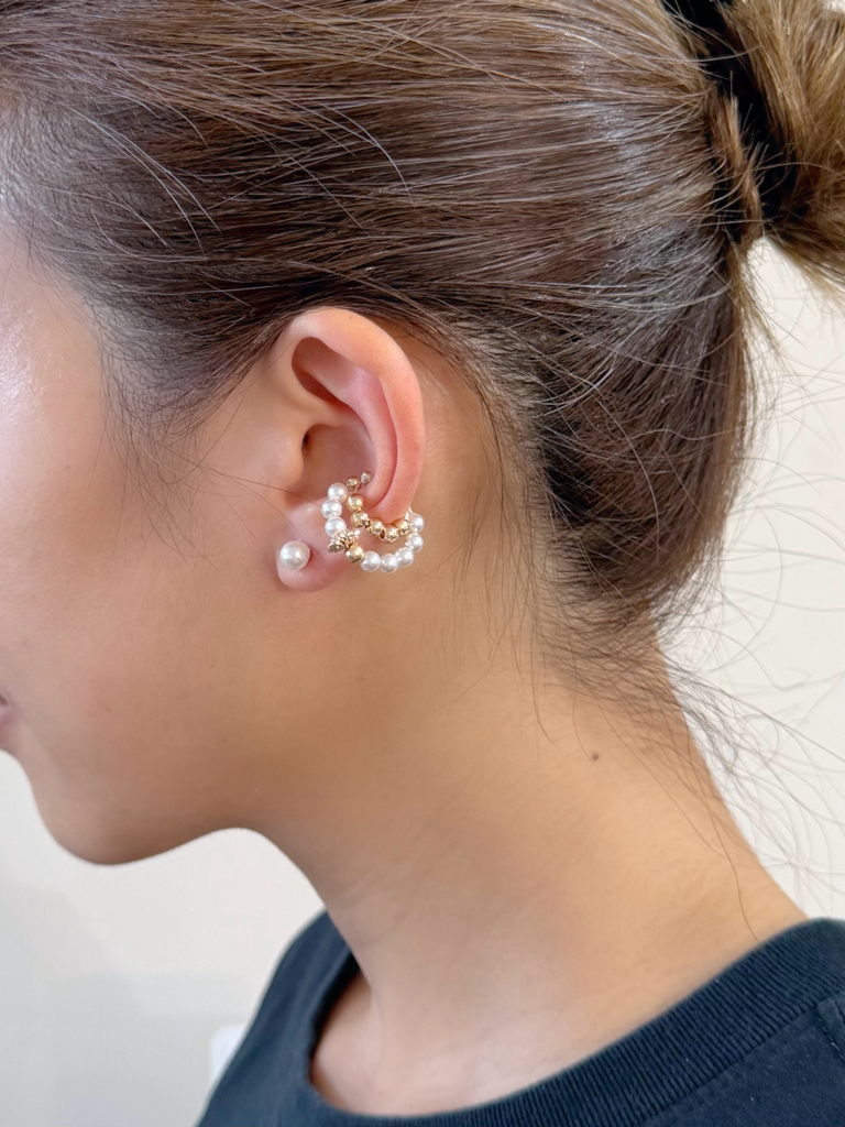 PEARL FLORA 珍珠之花 耳夾+耳環款 米白珍珠小花環耳夾+水晶珍珠耳環 HKD 158 米白珍珠雙圈花環耳夾+水晶珍珠耳環 HKD 158