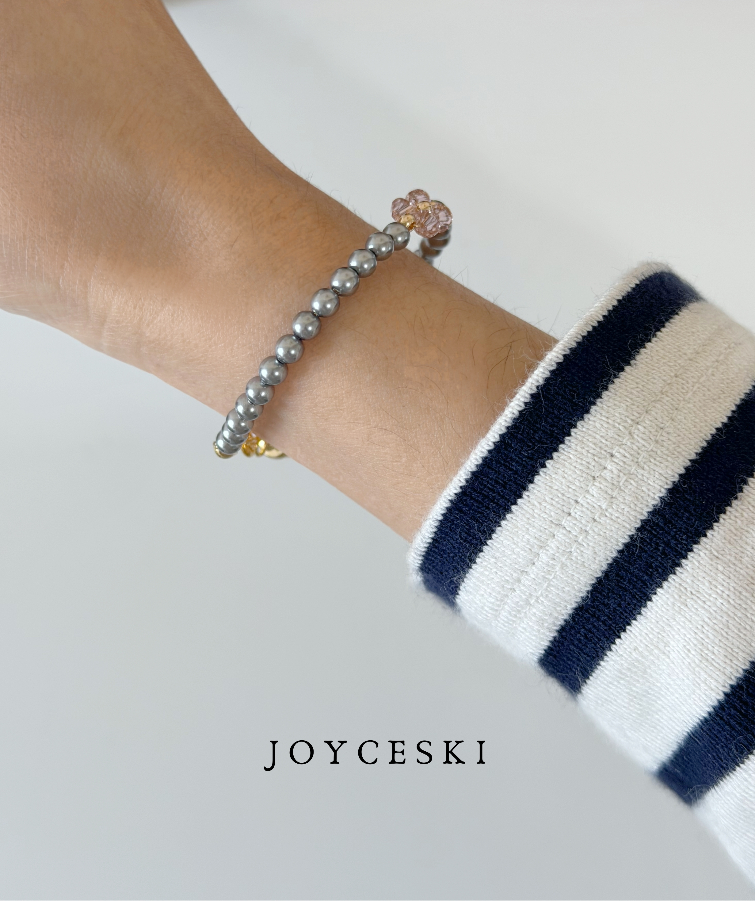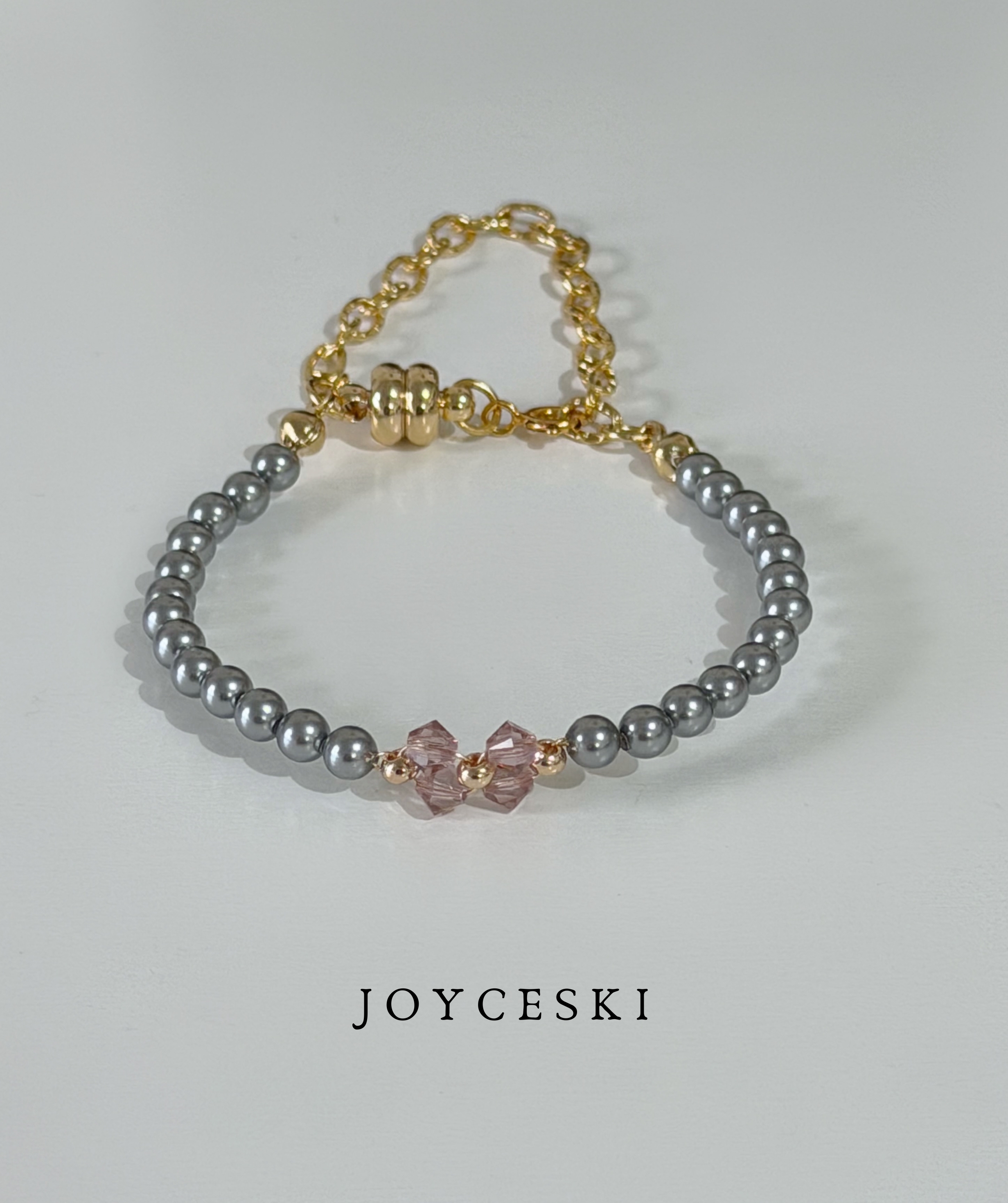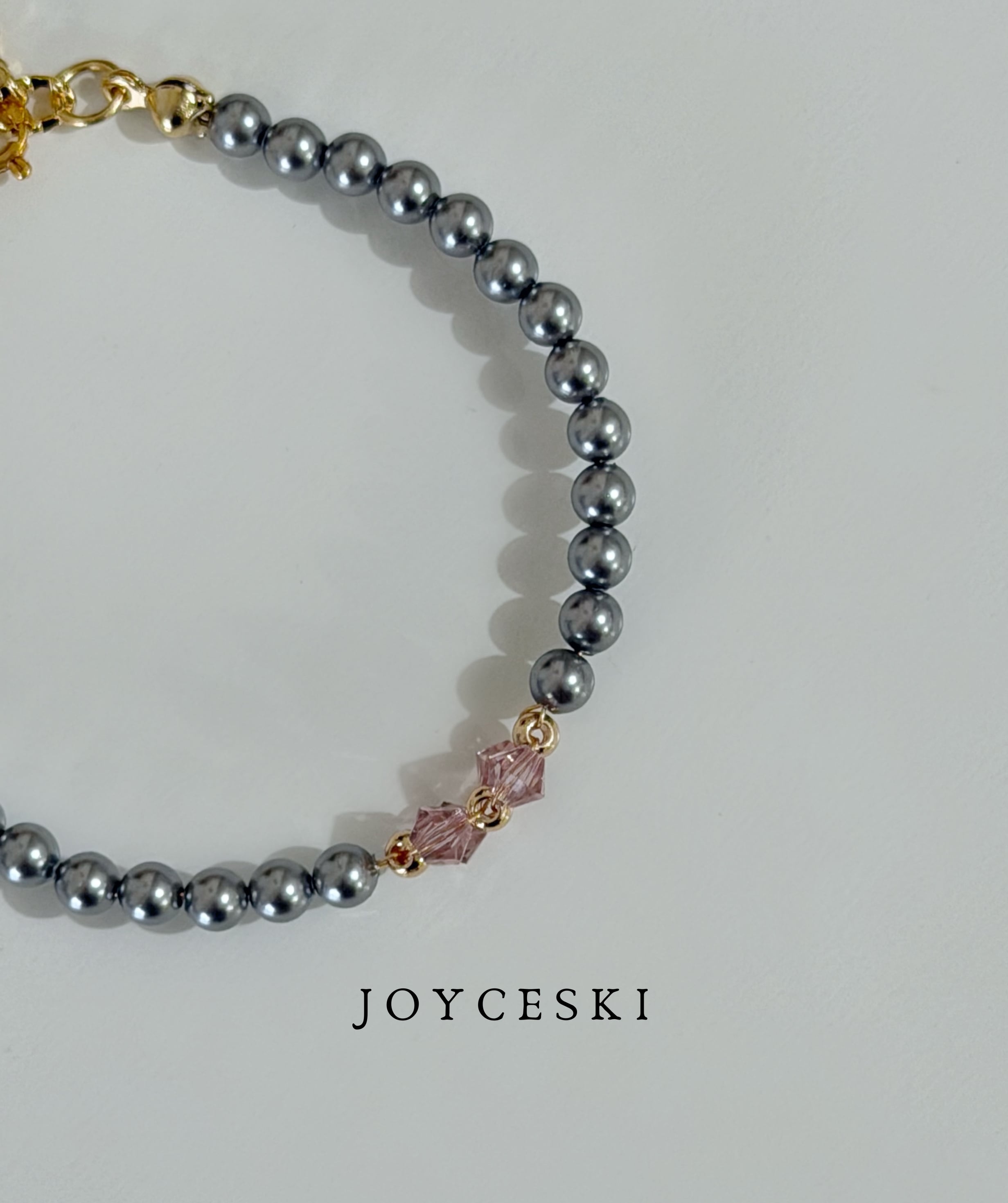 玫粉色水晶小花灰珍珠手鍊