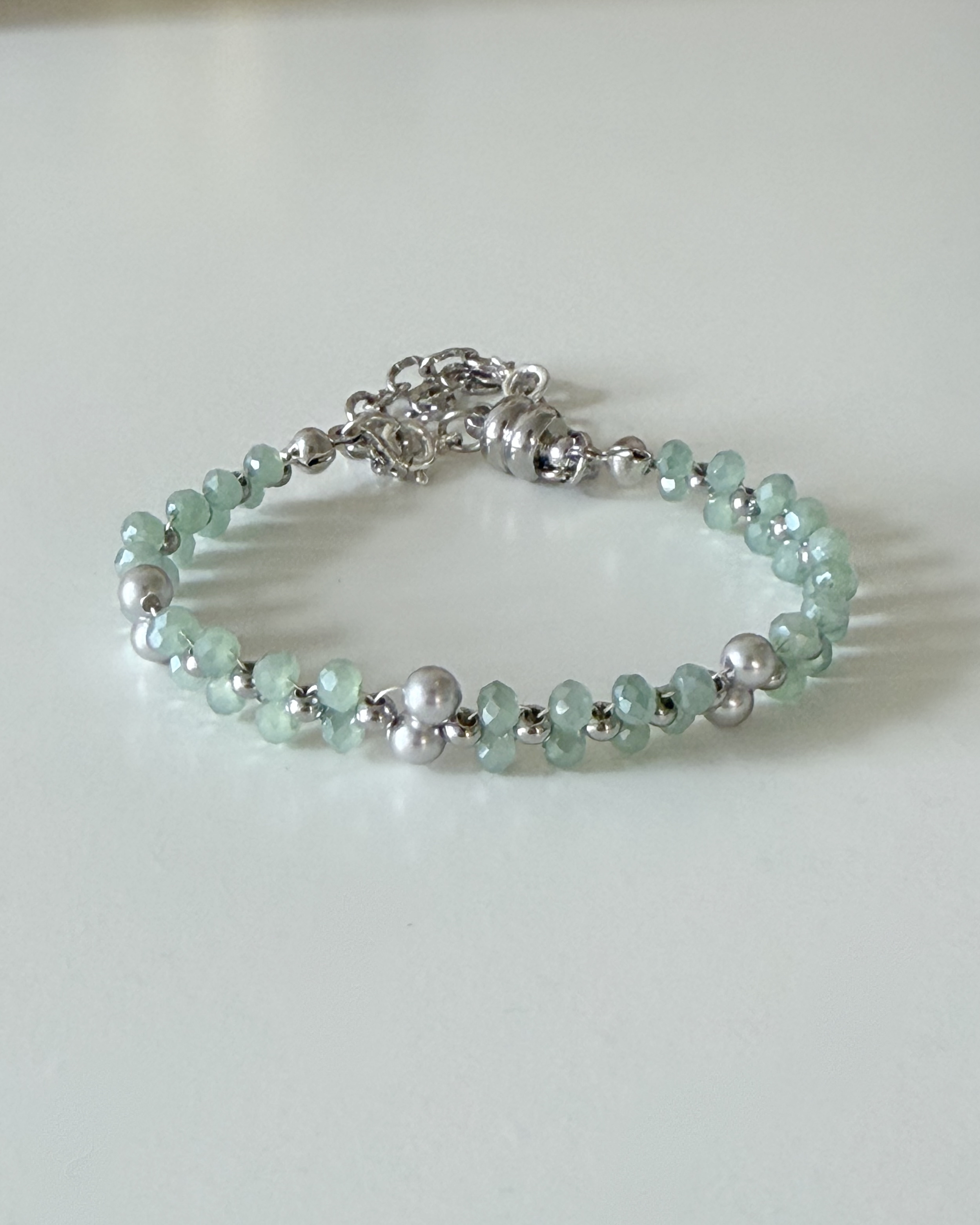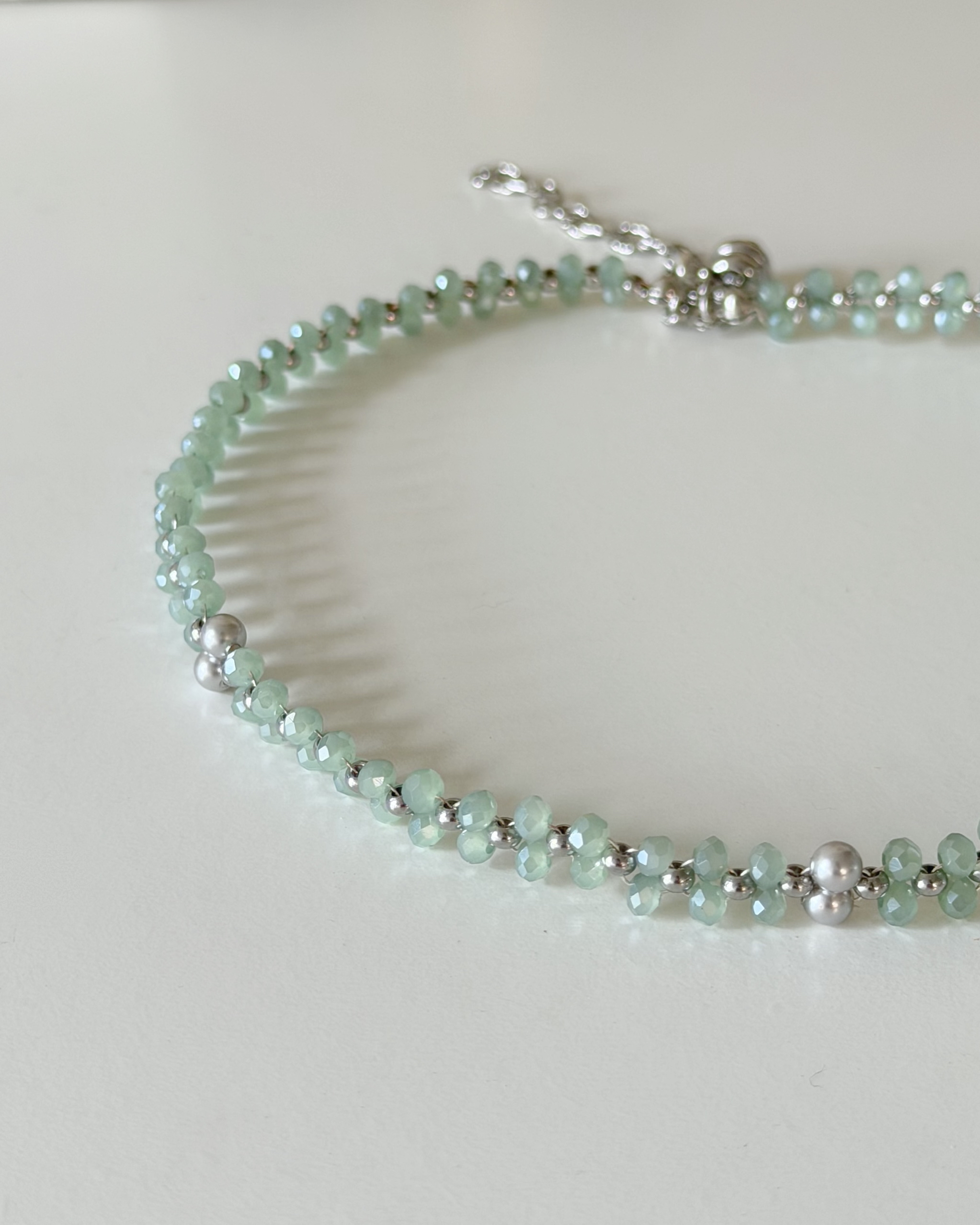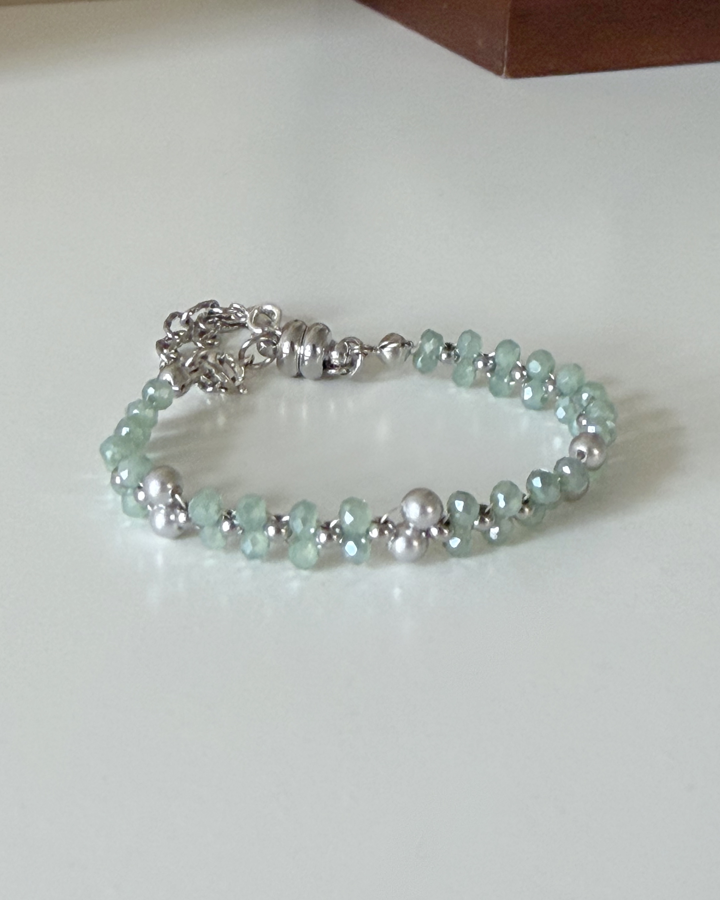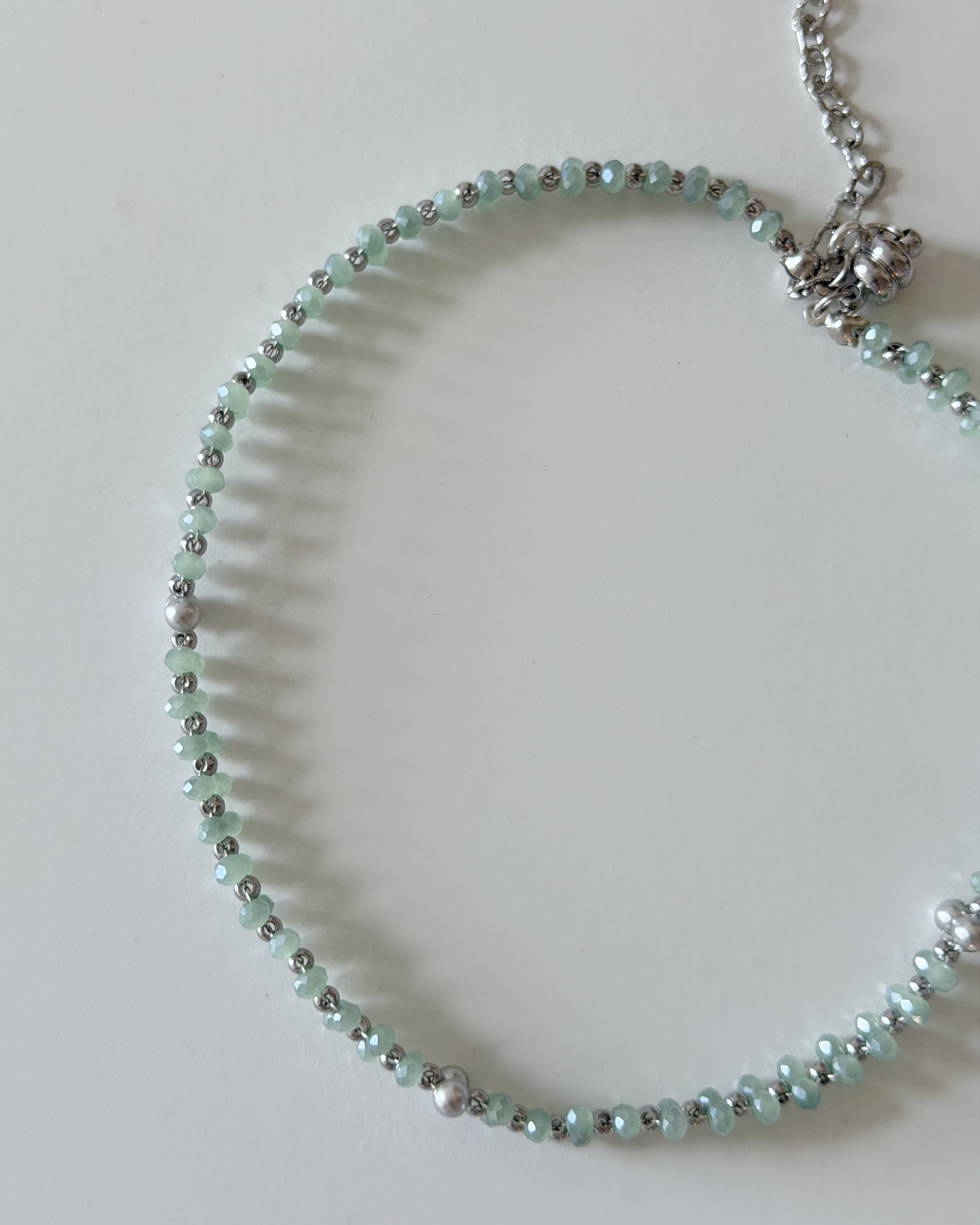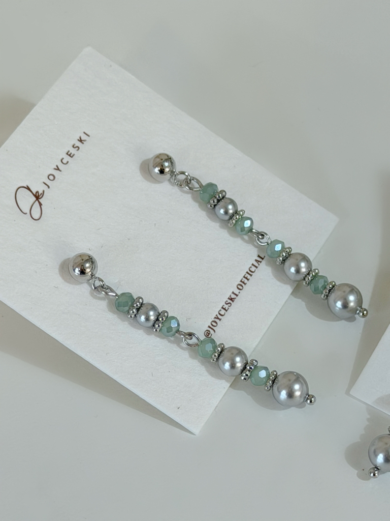 Forestlight Blossom 森光花語 🌿 Pastel綠色 + 銀色配件 + 淺灰珍珠 如森林深處透出的光芒,清幽而靜謐. 風格定位:綠色水晶如嫩葉,灰珍珠如林間露珠,銀色配件如月光映照,適合自然系或療癒風格 淺灰珍珠 Pastel綠色 長耳環 HKD 158
